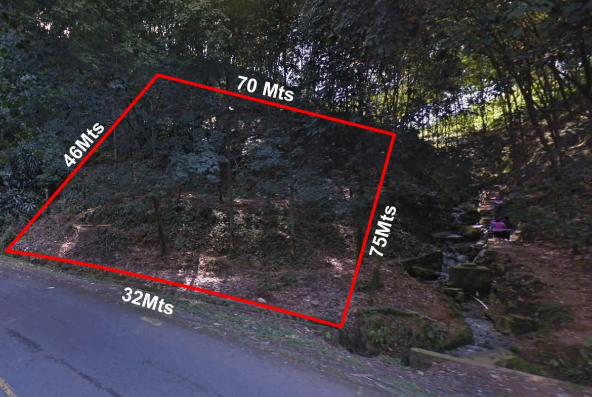 Terreno en venta Entrada el Rodeo San Marcos Guatemala Sobre Calle asfaltada De forma Irregular Terreno sobre carretera asfaltada Frente 32 metros lado Derecho 75 Metros lado Izquierdo 46 metros Fondo 70 metros